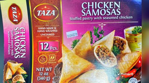 12-oz. box packages labeled “TAZA CHICKEN SAMOSAS” with date codes 05/21, 06/21, or 0527021 through 062921 (inclusive).