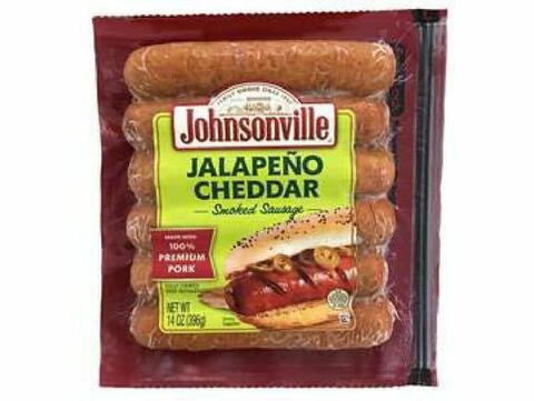 14-oz. film, vacuum packages containing “Johnsonville JALAPEÑO CHEDDAR Smoked Sausage” with a “Best By 06/09/2019” date on the back of the package.