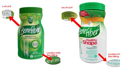 Consumers that have Benefiber Healthy Shape Prebiotic Fiber Supplement powder and Benefiber Prebiotic Fiber Supplement powder in their possession are advised to check the lot information on the product to see if it is part of the five lots being recalled.