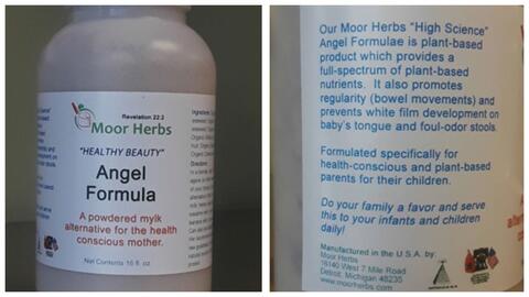 The recalled "Angel Formula" was sold through its Detroit, Michigan retail store and nationwide through online sales via www.moorherbs.com