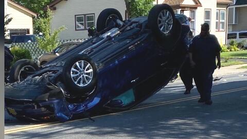 Officials said the driver of the car was traveling Sanford Avenue near Clinton Avenue when the vehicle struck a parked vehicle then overturned.