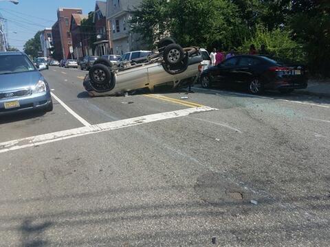 Police in Newark are investigating a car crash that caused one of the vehicles to overturn on a street in the city earlier this afternoon.