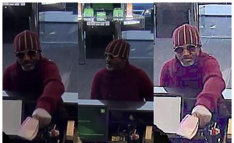 Upon arrival, detectives learned a dark skin black male, approximately 5’8 – 5’10, average build, wearing a maroon knit hat, maroon shirt, black pants and sunglasses entered the bank and demanded money from the teller.