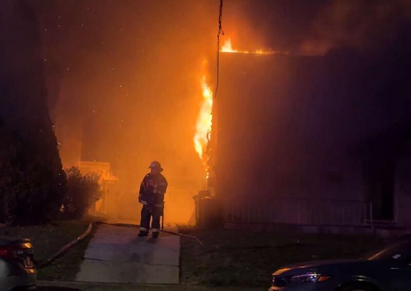 When firefighters arrived, they found the two-story home engulfed in flames, with fire spreading rapidly across both floors.