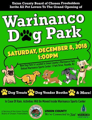 The Union County Board of Chosen Freeholders invites County residents to the opening of the Warinanco Dog Park on Dec. 8th at 1 p.m.