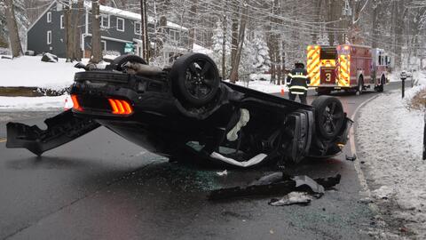 Mountainside authorities said at approximately 9:30 a.m., Mountainside Police responded to the area of Summit Road and Heckel Drive for a motor vehicle accident involving an overturned 2021 Ford Mustang.