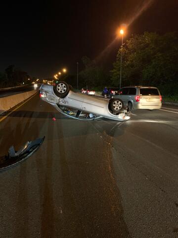 The driver of a car that police found overturned on a highway in Newark ran from the scene immediately after the crash.