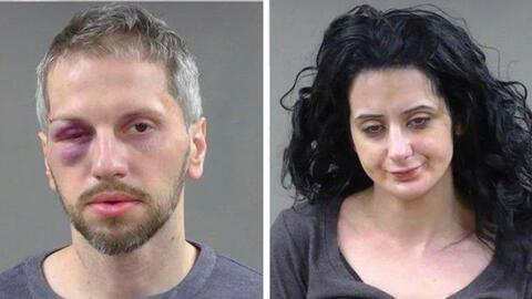Police said the caller described the suspects, including that the male had a bruised eye.