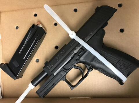 According to authorities, agents spotted the gun - 9 mm handgun loaded with seven bullets, one of which was in the chamber - as it went through an X-ray machine in Terminal B.