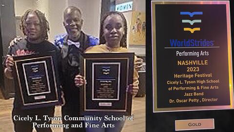 Cicely Tyson Performing Arts School has done it again. The school's talented band won two prestigious awards at the 2023 Heritage Worldstrides Music Festival in Nashville, Tennessee.