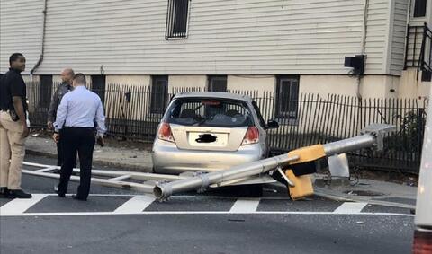 The pursuit came to an end when the suspect lost control of the car and slammed into a traffic light and a parked car in the vicinity of Sussex Avenue and Norfolk Street.