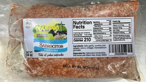 The affected items, sold under the “OLANCHO” brand name, include several varieties of homestyle and smoked chorizo, smoked pork chops, and smoked ribs.