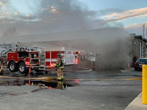 According to preliminary reports, fire broke out at 1902 Lower Road at approximately 4:05 p.m. sending firefighters to the scene where they encountered heavy smoke and flames coming from inside the municipal garage.