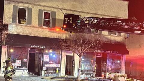 The building, with apartments on the upper floors and stores below, was seen with flames erupting from its rear.