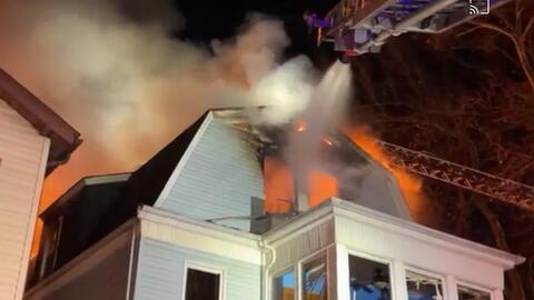 Upon arrival, fire officials activated a second and a third alarm for manpower after flames engulfed much of the large three-story house.