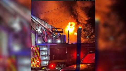 One firefighter experienced breathing difficulty, was treated at the scene by EMS, and remained on duty.