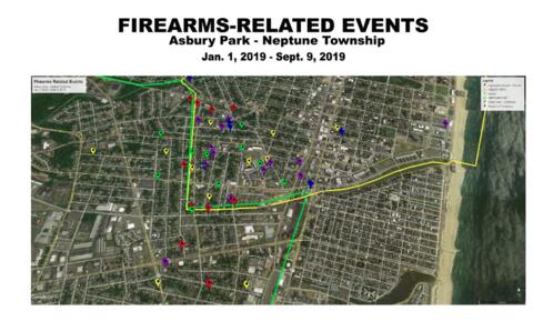 Officials say there has been a significant number of gun-related incidents in Asbury Park and Neptune Township since the beginning of the year, resulting in two murders; another 13 shooting incidents that resulted in serious bodily injury; 15 confirmed shots-fired incidents; another 13 reports of shots-fired incidents that could not be substantiated; and the seizure of 37 handguns and one semi-automatic AK-47 replica rifle.