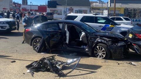Just under a half dozen vehicles were smashed and damaged during the pursuit at the Paterson scene.