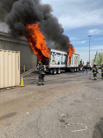 Fire officials say firefighters responded to the Jersey Gardens Mall on Kapkowski Road at approximately noon for a tractor trailer fire next to the building.