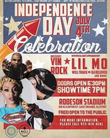The City of East Orange Independence Day celebration is planned to kick off on July 4th from 5:30 p.m. to 7 p.m. at the Robeson Stadium and is free and open to the public.