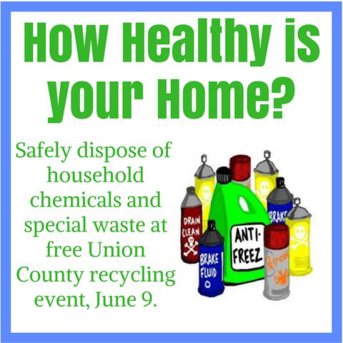 The household hazardous waste collection will be held rain or shine for Union County residents only, not for businesses. Proof of Union County residency is required.