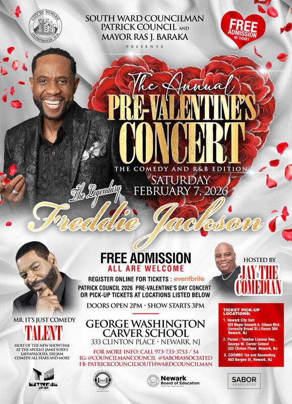 Residents are invited to celebrate love, laughter, and timeless music at the Annual Pre-Valentine’s Day Concert hosted by South Ward Councilman Patrick Council and Ras J. Baraka.