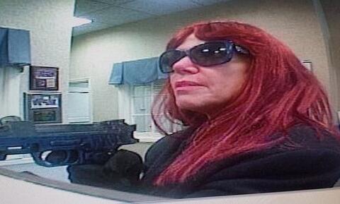 The suspect is described as 5’7” and medium build. The suspect was last seen wearing a red wig, sunglasses, black gloves, black coat, white boots and a large purse, according to officials.