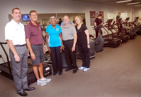 Clark Councilman At-Large Bill Smith, Clark Recreation Director Ralph Bernardo, Freeholder Vernell Wright, Council Vice President (at-Large) Alvin Barr, and Lori Banta, Clark Senior Fitness Recreation Director.