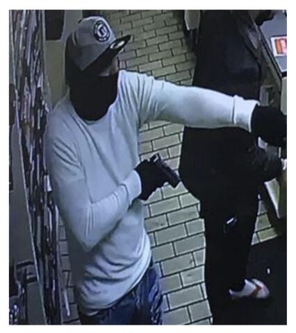 Police on Hamilton has released a surveillance photo of an armed masked accused of robbing a 7-Eleven Sunday night and possibly a second 7-Eleven last week.
