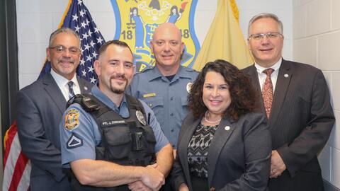 The officer, who had been part of a recent Prosecutor’s Office Crisis Intervention Training (CIT), used the lessons that he learned only weeks earlier to help a person in distress attempting to harm themselves successfully, announced Acting Monmouth County Prosecutor Lori Linskey.