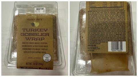 According to information released by the USDA, the product in question is a 10-ounce clear plastic clamshell package labeled “TRADER JOE’S TURKEY GOBBLER WRAP” with a “BEST BY SEP 16, 2025” date