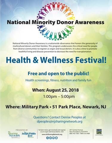 The National Minority Donor Awareness coordinately invites the community to their health and wellness fair.