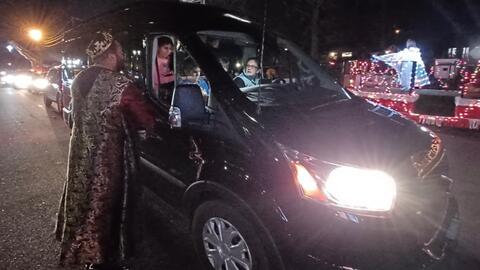 They were greeted by bright lights illuminating the sky, holiday music, glistening floats, dancers dressed as snow angels, three hay-chomping camels, a giant star hung from a firetruck ladder, and, of course, the Three Kings officials reported.