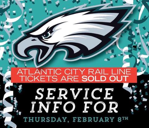 According to New Jersey Transit Police, effective 12 AM Thursday, February 8, 2018, Atlantic City Rail Line ticket sales are suspended to/from the Philadelphia Eagles Parade due to a high volume of tickets sold.