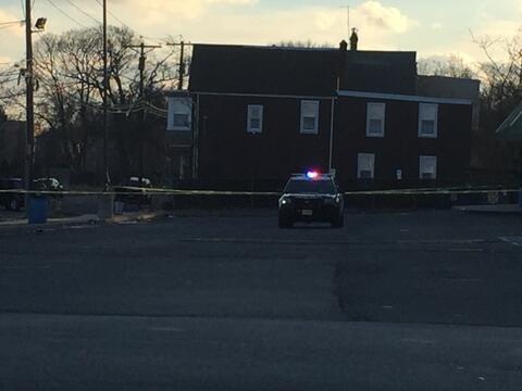 Police have a crime scene established inside the rear parking lot of the Family Dollar at the intersection of South 10th and Kent streets as officers investigate a shooting with at least one person struck by gunfire this afternoon.