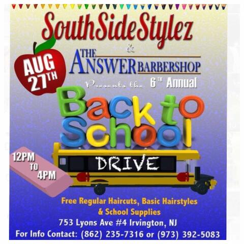 The community is coordinately invited to the 6th annual back to school drive hosted by the fantastic management staff at South Side Stylez in Irvington Township