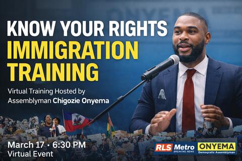 Assemblyman Chigozie Onyema is inviting community members to participate in a virtual Know Your Rights training designed to help residents better understand their legal protections and prepare for potential interactions with immigration authorities.