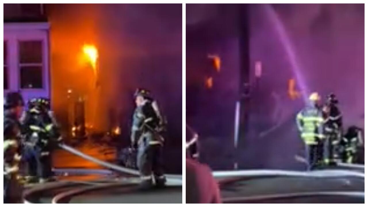 The blaze broke out around 10:50 p.m. in the 1200 block of North Olden Avenue, prompting several 911 calls reporting flames and possible trapped individuals inside one of the homes.