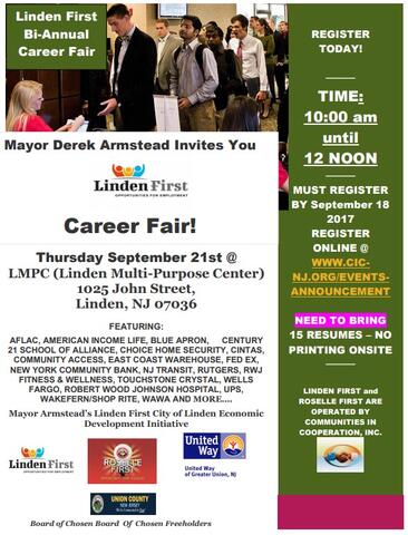The event will be held on September 21st from 10 a.m. - 12 p.m. at the Linden Multi- Purpose Center located at 1025 John Street.