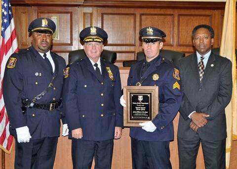 Photo Caption: (left to right) Detective Lieutenant Abdul Williams, Chief James M. Schulhafer, Detective Sgt. Brian A. Fech, and Mayor Derek Armstead