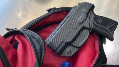The firearm was discovered in the man's backpack during routine security screening.