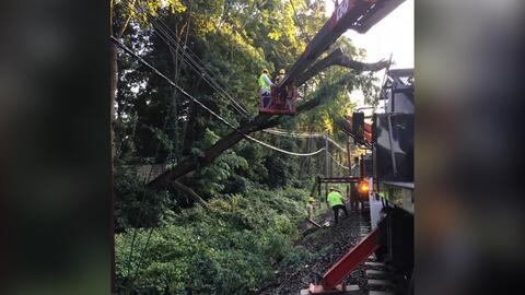 Crews are working to remove a tree that fell on wires causing them to fall officials said.