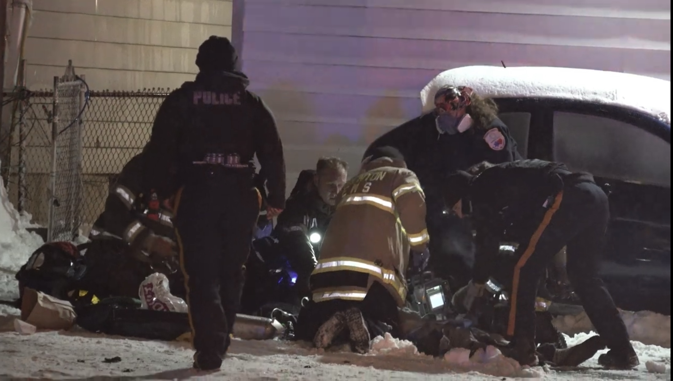 Firefighters administered CPR on an unconscious and unresponsive male found inside the burning house. He was rushed to an area hospital and is reportedly in grave condition.