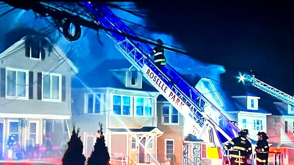 Firefighters in Roselle, supported by mutual aid crews from across Union County, battled a raging four-alarm fire Monday evening that tore through several homes.