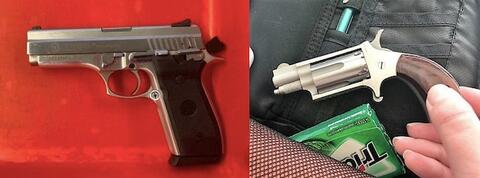 Two men were taken into custody Monday after attempting after to bring loaded guns through a security checkpoint at Newark Liberty International Airport.