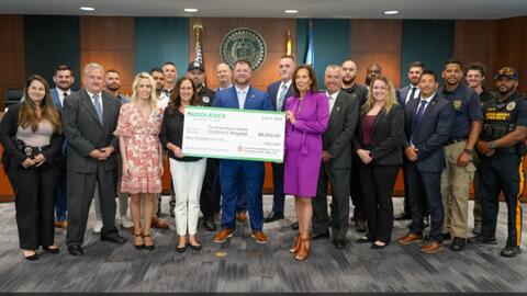 Middlesex County officials announced that on Monday, June 3, Middlesex County leadership and members of the Police Benevolent Association Local 214 and Superior Officers Associations Local 214 presented to the Bristol-Meyers Squibb Children’s Hospital at Robert Wood Johnson University Hospital a $9,000 check, the highest ever raised in this annual event.