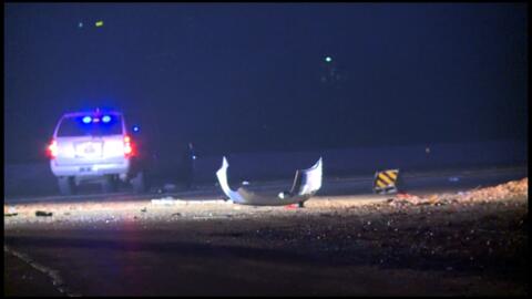 A third vehicle, a 2017 Hyundai Santa Fe, struck a detached tire from the Charger. The drivers of the Nissan and the Hyundai were not injured in the crash.