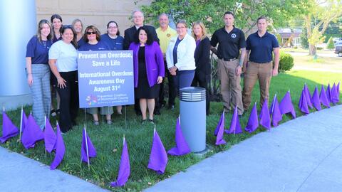 A sea of small purple flags will adorn the grass along the front entrance to the Monmouth County Prosecutor’s Office for the rest of the month, leading up to International Overdose Awareness Day on August 31, with each flag representing an individual lost due to a drug overdose in the county this year.