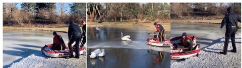 Moorestown officers came to the rescue of a swan stuck in a frozen pond.