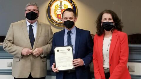 Officials said in a release, on September 23, 2021, Morris County Prosecutor Robert J. Carroll, First Assistant Prosecutor Maggie Calderwood, and Chief of Detectives Christoph Kimker presented a commendation to Assistant Prosecutor Justin Tellone for his rescue and recovery efforts in Somerset County during Ida flooding.